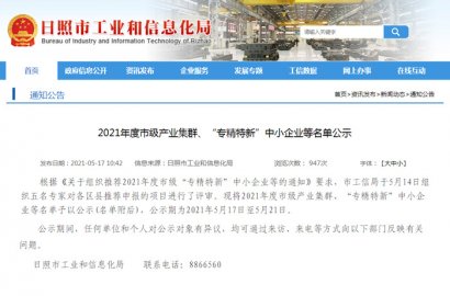 根據(jù)《關(guān)于組織推薦2021年度市級“專精特新”中小企業(yè)等的通知》要求,市工信局于5月14日組織五名專家對各區(qū)縣推薦申報的項目進(jìn)行了評審。我公司申報的日照市“瞪羚”企業(yè)通過評審。